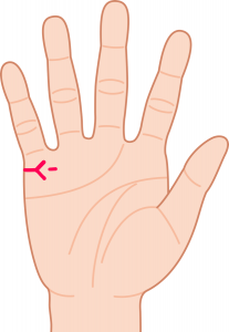 小指の下にアルファベットのYを横にしたような手相が見られ、その隣に並ぶ形で一本線が入っているのも復縁線、元サヤ線です。